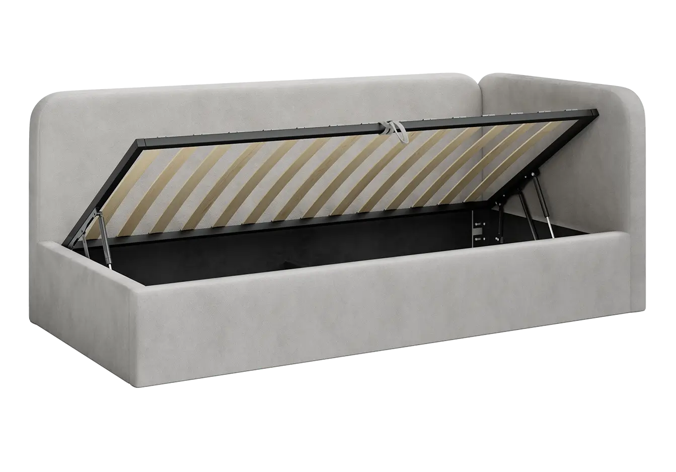 Pojemny schowek – podnoszony stelaż z siłownikami gazowymi ułatwia dostęp do przestrzeni na pościel.