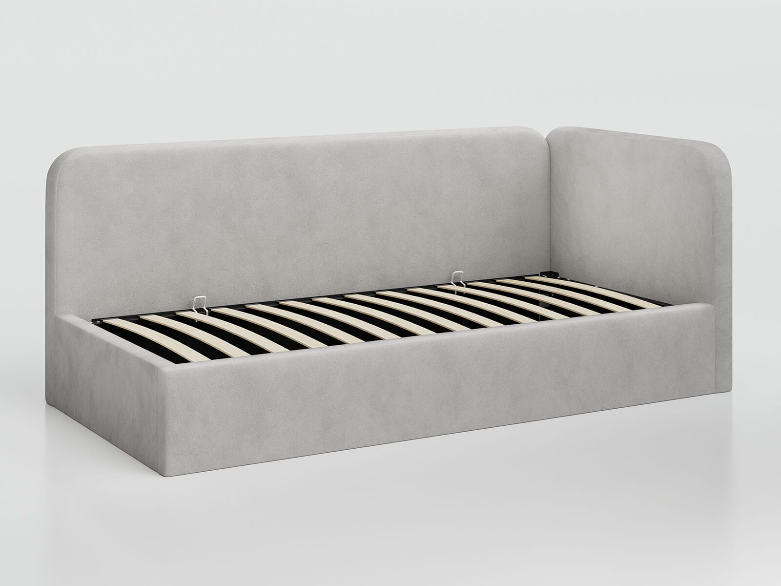 Tapczan jednoosobowy tapicerowany 90x200 z pojemnikiem ze stelażem Bluvel 03 Jasny Szary Leo